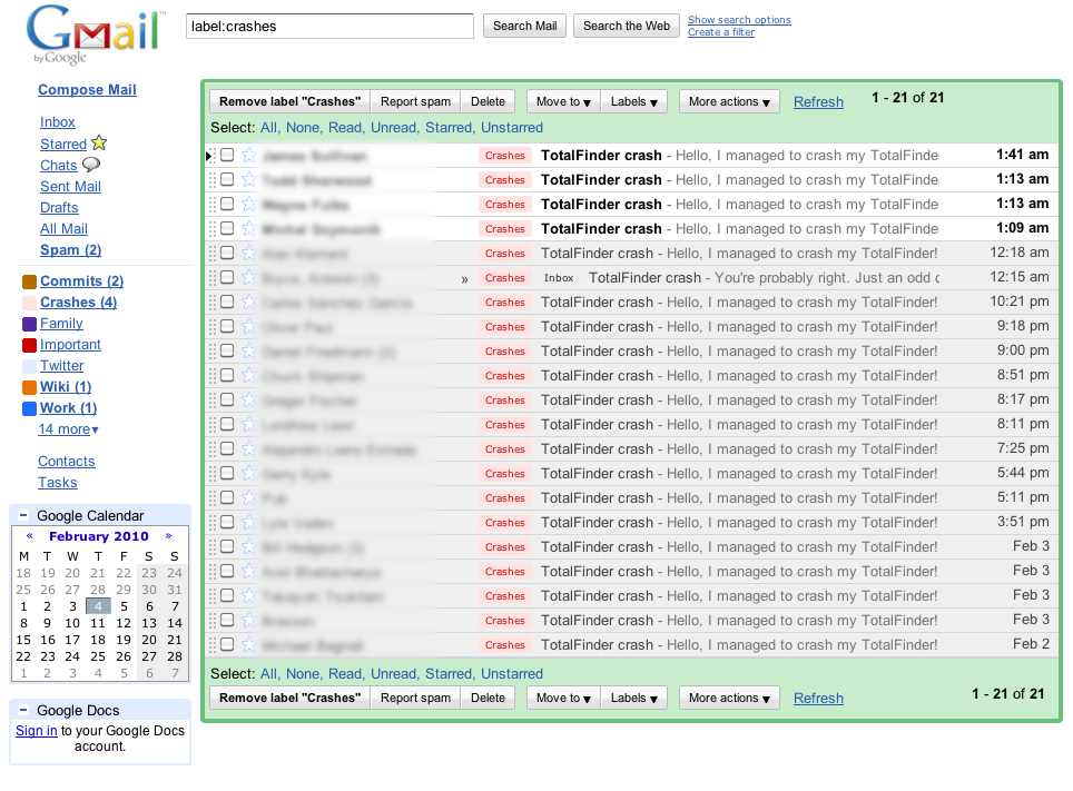 The best part is I didn’t have to learn anything new and I can use all Gmail goodness for managing my crash reports.